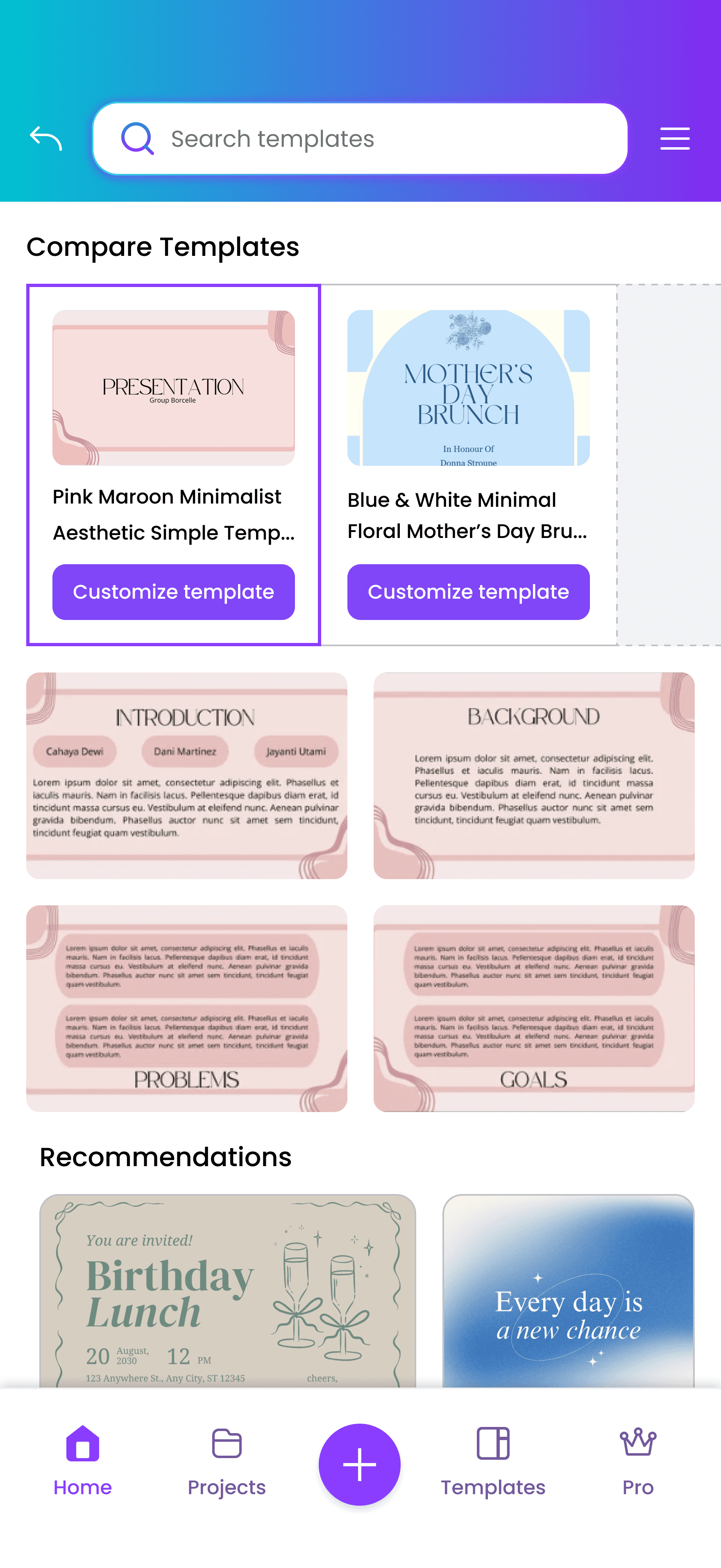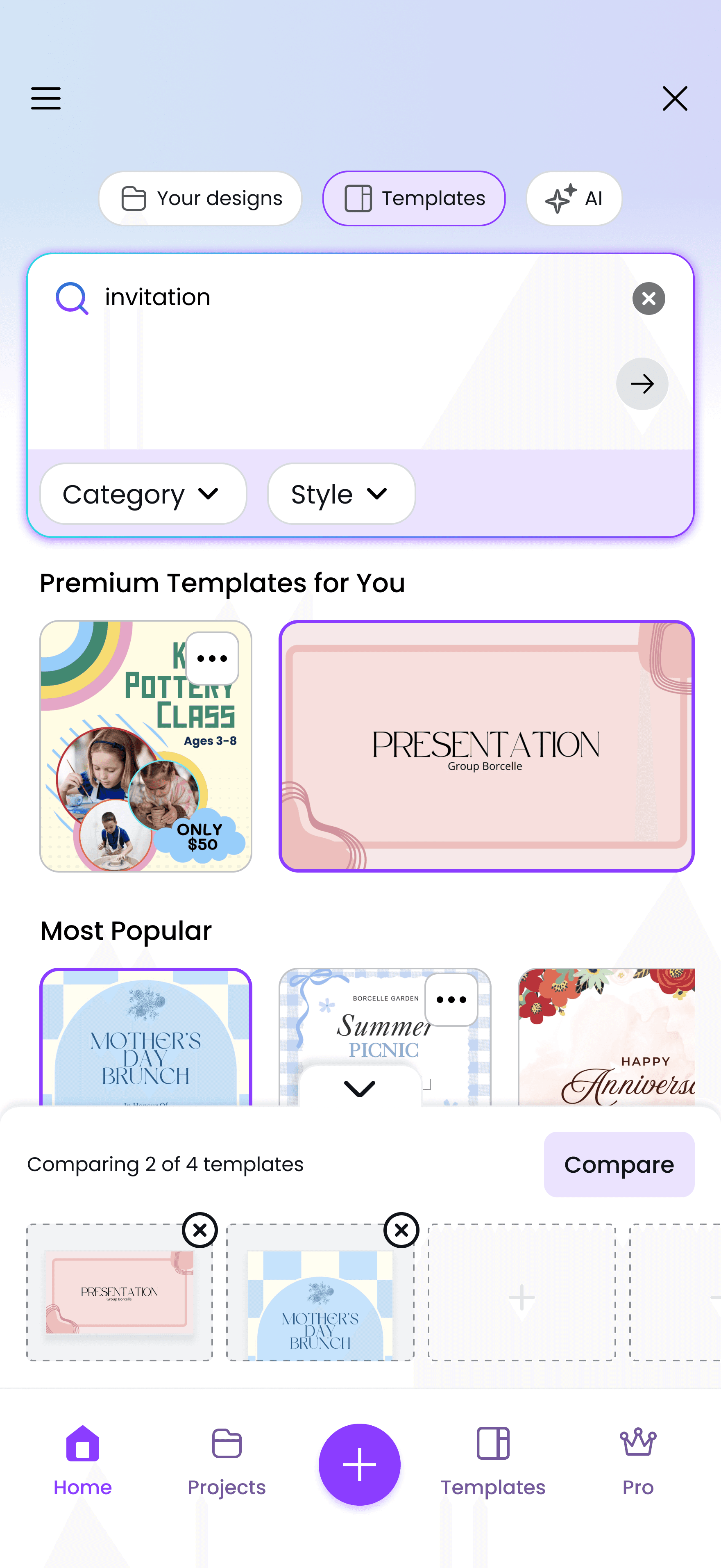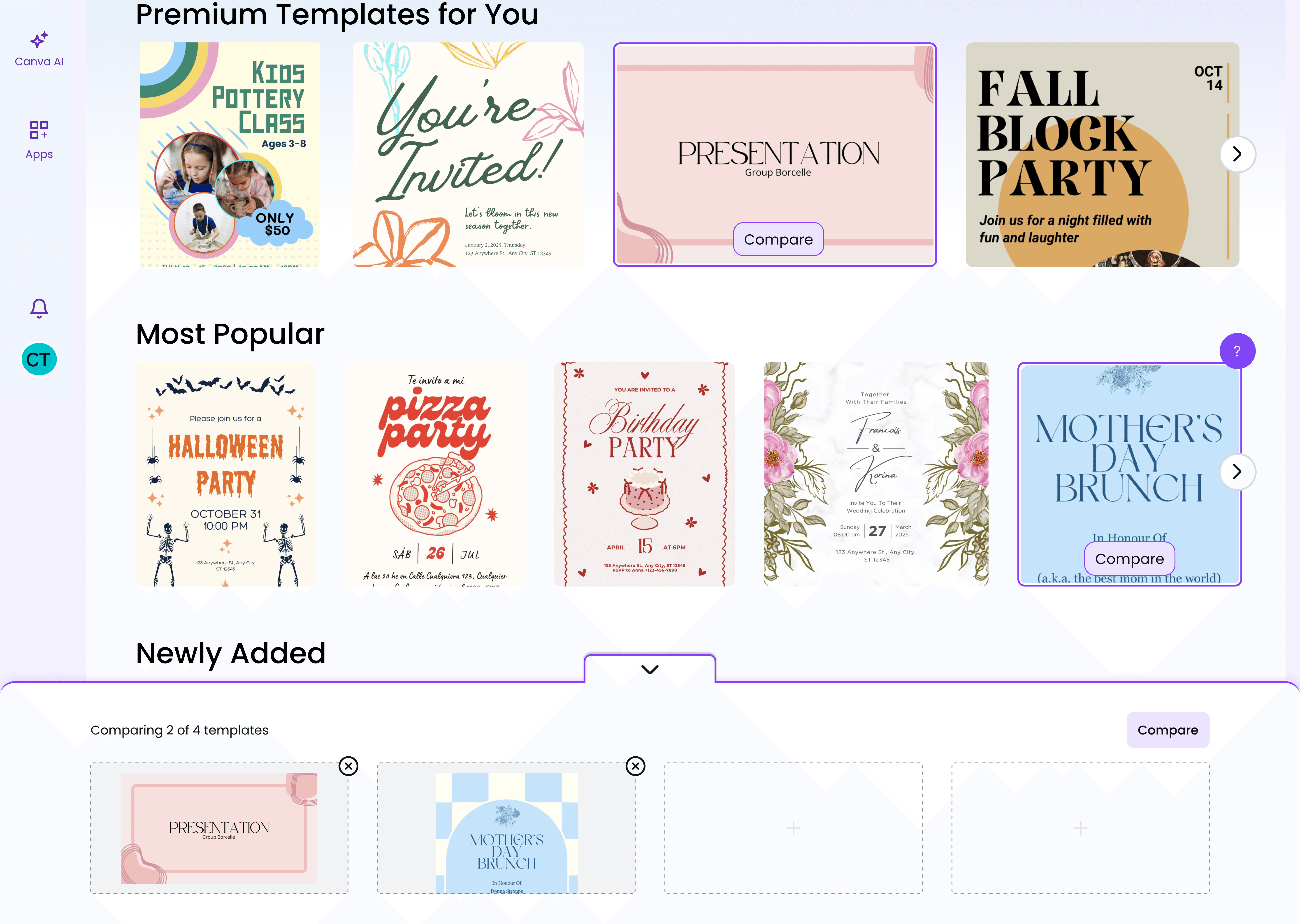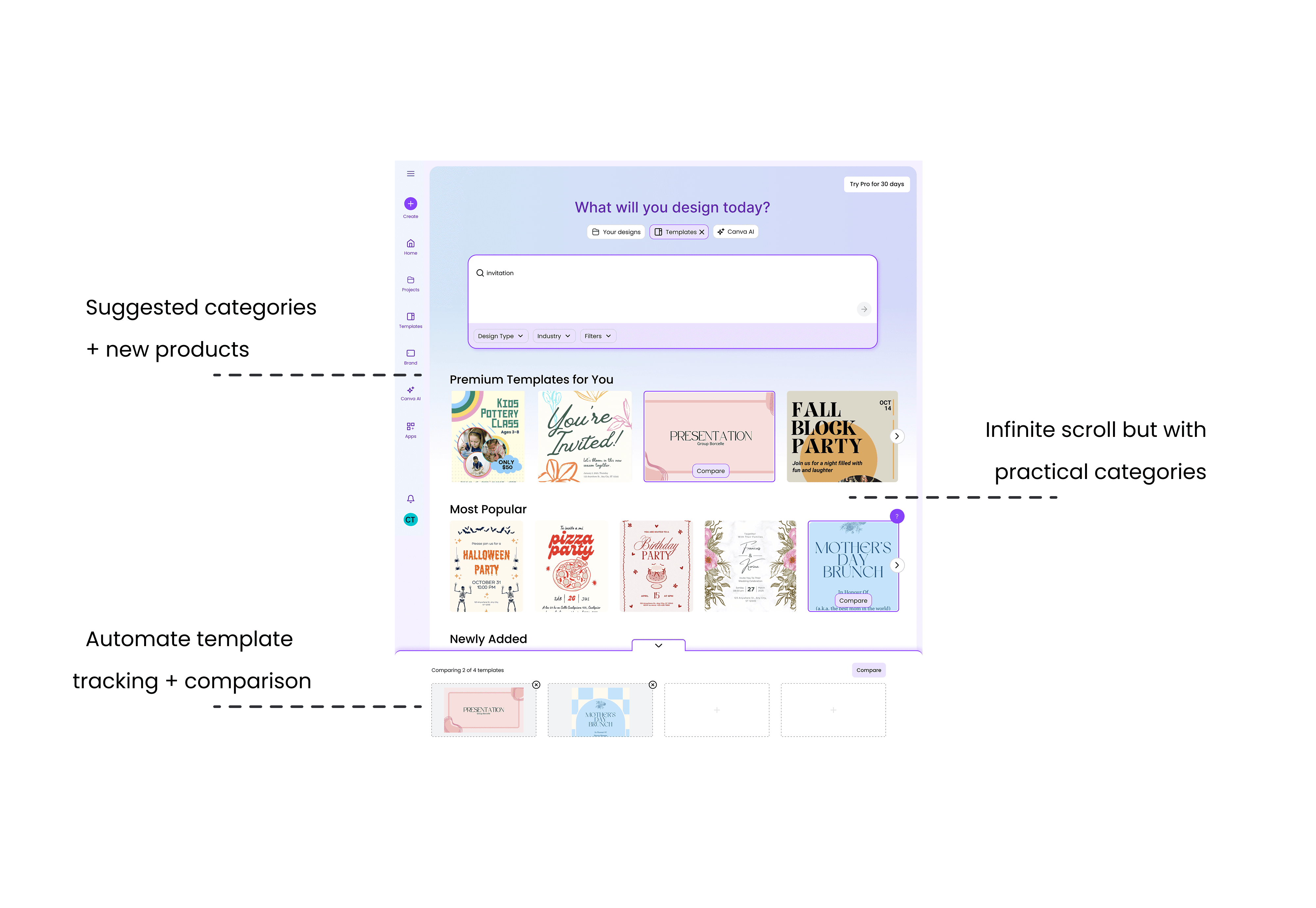 Here’s a demo of Canva Template Comparison, a feature that helps users browse freely and confidently by letting them pin and compare templates without losing track of their favorites.